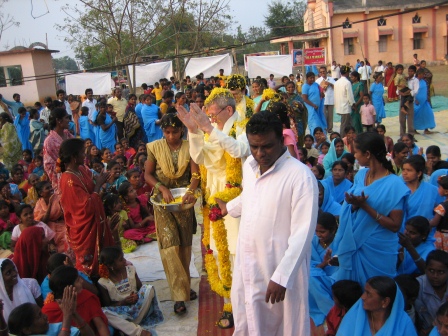 An den nächsten 2 Tagen besuchten wir die verschiedenen Pfarreien. Wir wurden überall sehr herzlich und mit allen indischen Ehrdarbietungen empfangen. Ein Besuch der Pfarrei von Fr. Maria Raju stand ebenfalls auf dem Programm. Weiters auch Fr. Don Bosco, der Bruder von Jeeva und Jugendseelsorger der Diözese Vijayawada. Ein Tag war auch für Guntur, das durch Baumwolle, Cilli und Tabak bekannt ist, eingeplant. Hier besuchten wir die "Colony". Das sind die von uns vor 2 Jahren finanzierten 30 Häuser für die Ärmsten. Ca. die Hälfte davon haben wir von Außen und Innen besichtigt. Die Freude der anwesenden Personen stand ihnen ins Gesicht geschrieben. Leider hatten wir nicht mehr die Zeit, die restlichen Häuser zu besichtigen.